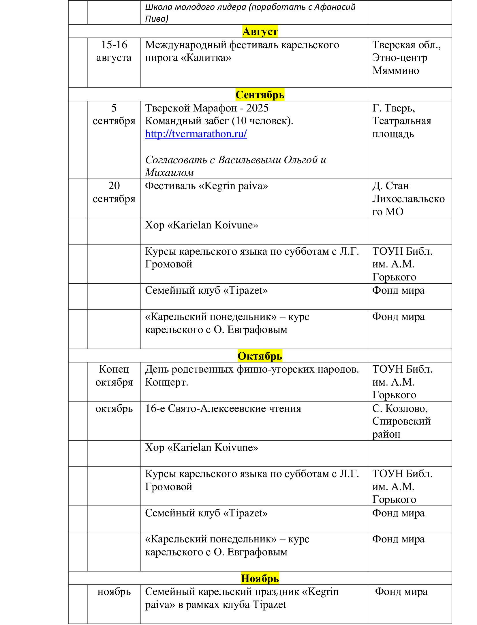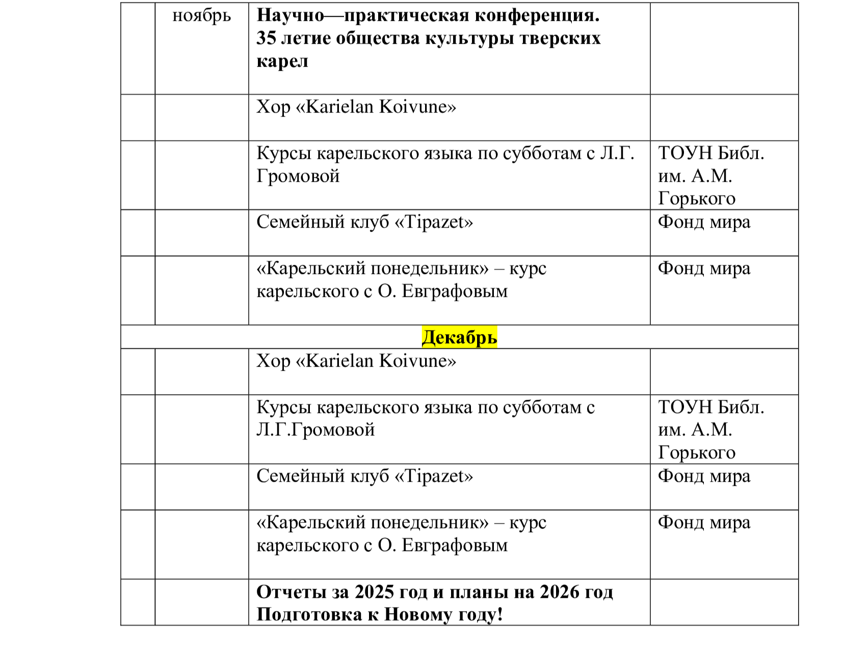 5. Продолжить курсы карельского языка для жителей г. Твери 2 раза в месяц
